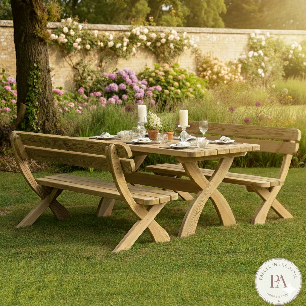 Malaga 4 Seat Garden Wooden Dining Set (Round Table)