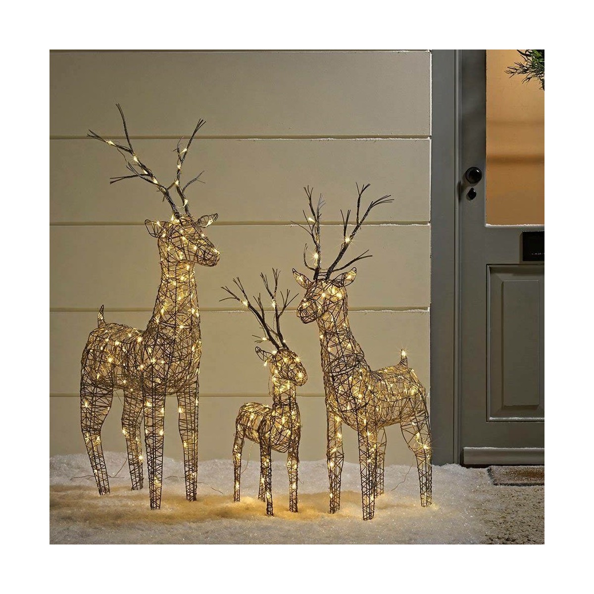 Set of 3 Christmas Outdoor Brown Wicker Standing Reindeer Pre-lit with Warm White LEDs