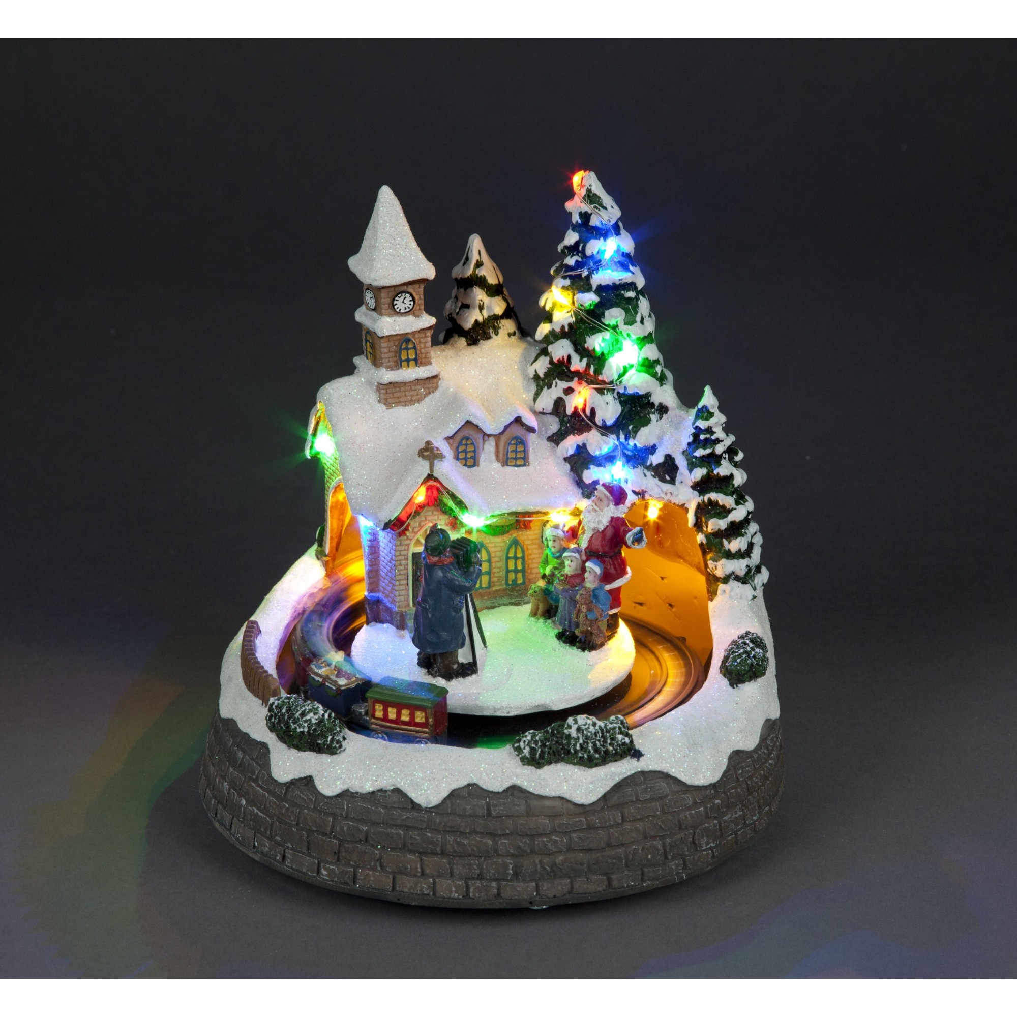 Christmas LED Village Scene with moving train, Santa, children and music battery operated