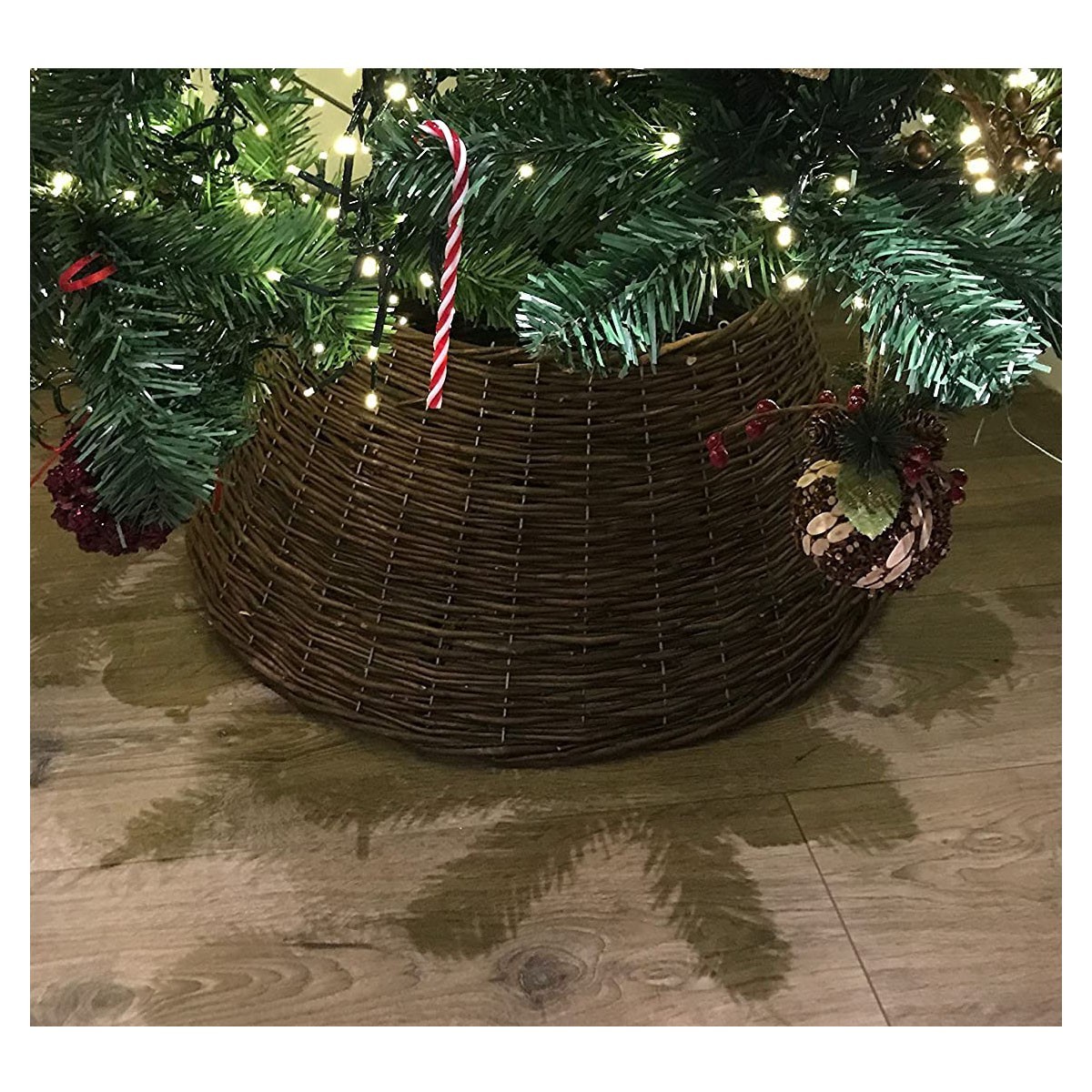 Our brown wicker basket style tree base will help disguise any ugly Christmas tree stands or lower stems. Suitable for real or artificial trees and looks great in any modern or traditional setting. 58cm base diameter x 28cm height / 40cm diameter top