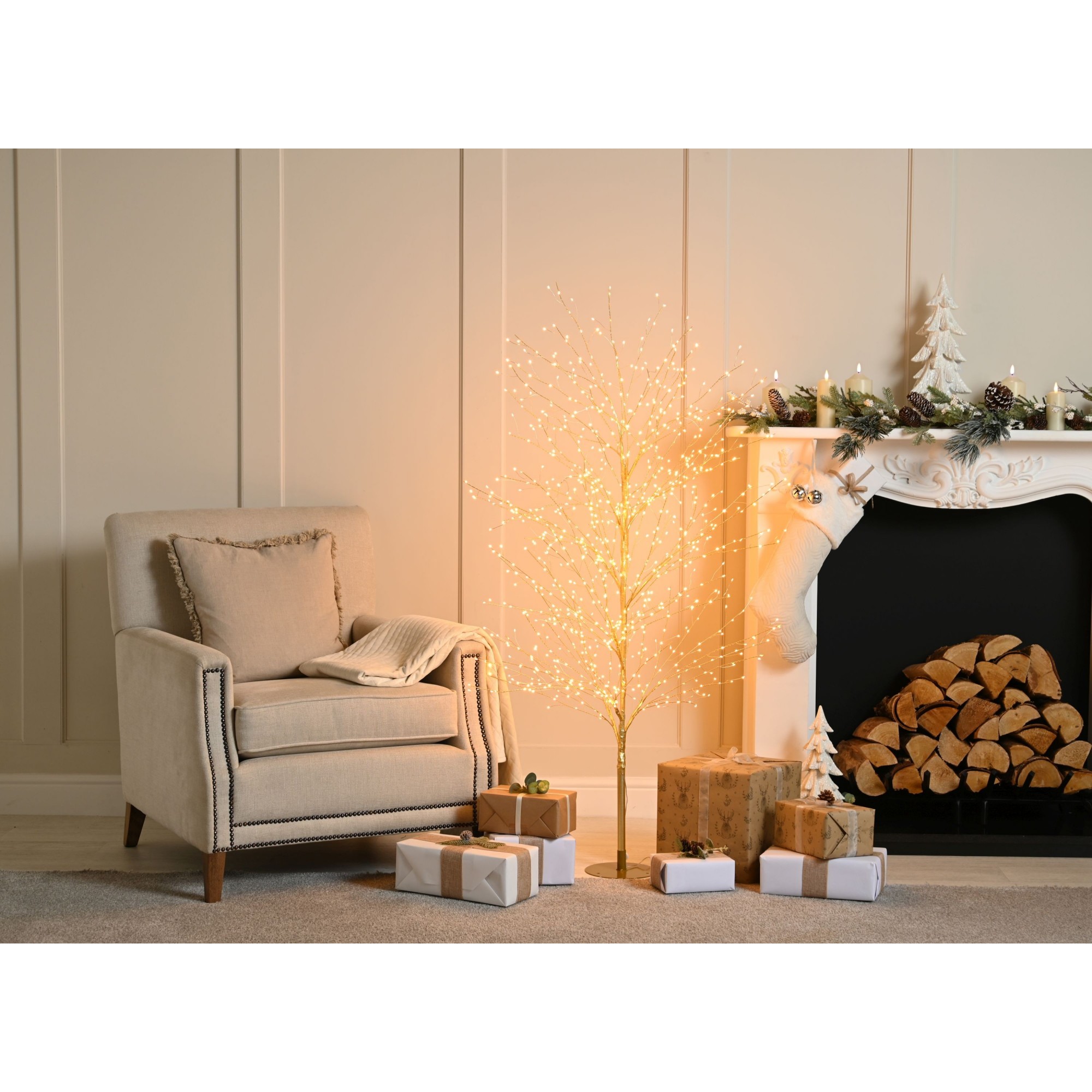 This stunning 1.5m/5ft high Micro Dot Dewdrop Christmas Tree with 1000 classic warm white LED lights is sure to bring a touch of gold magic to your Christmas!