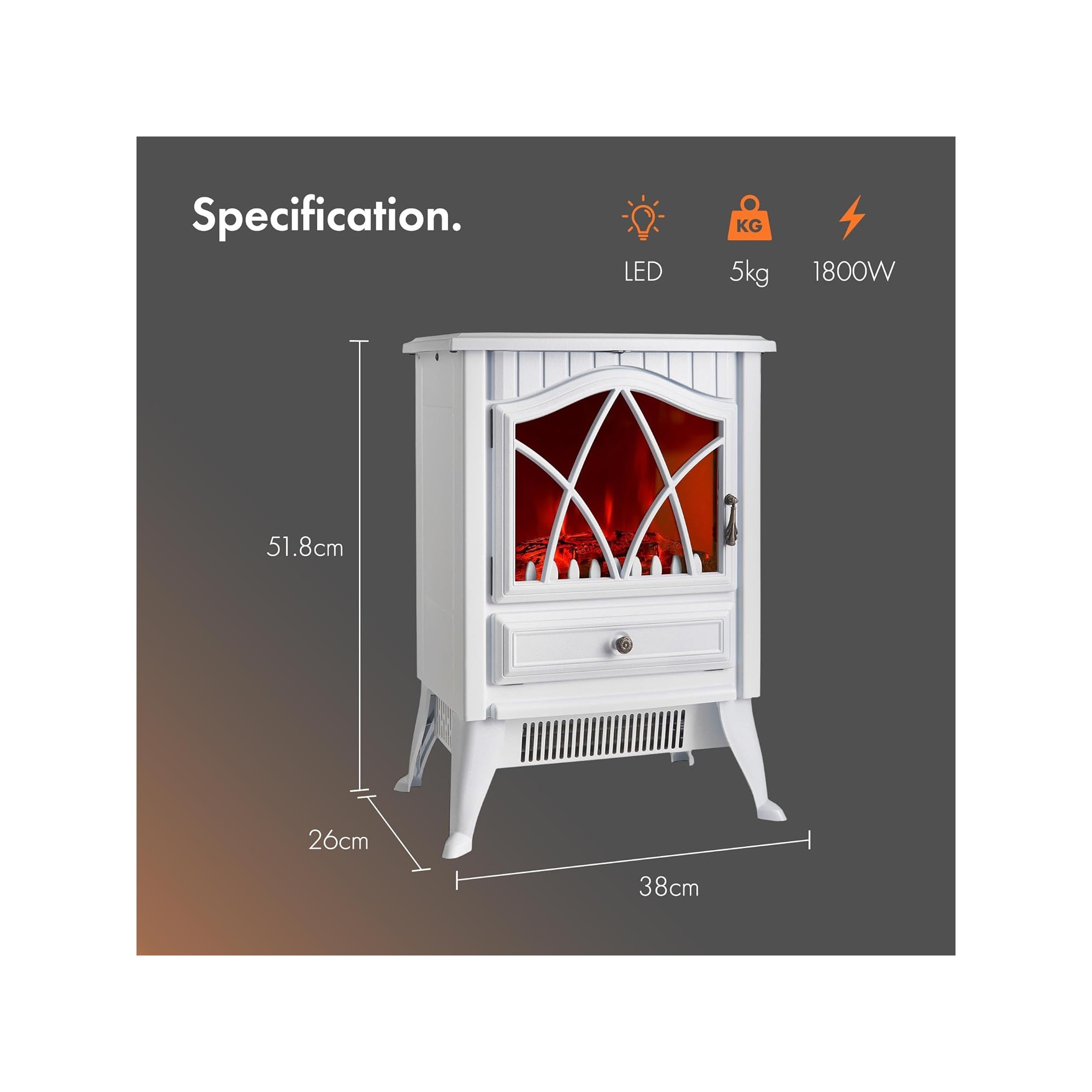 It has a 1800w fire with real log flame effect.