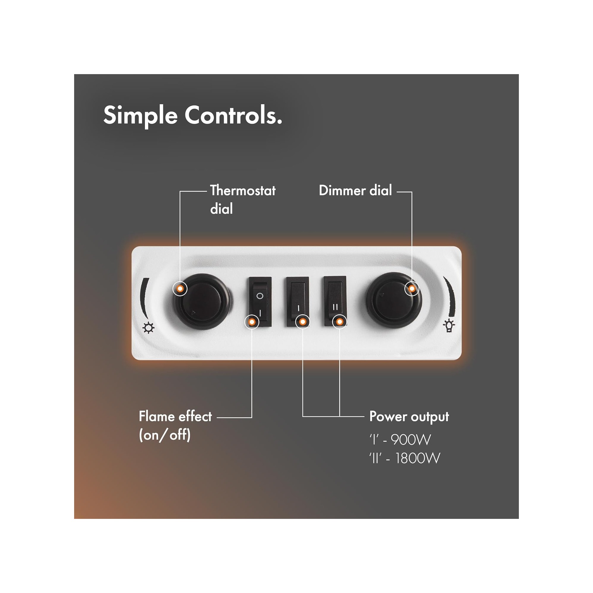 Two heat settings 900w and 1800w