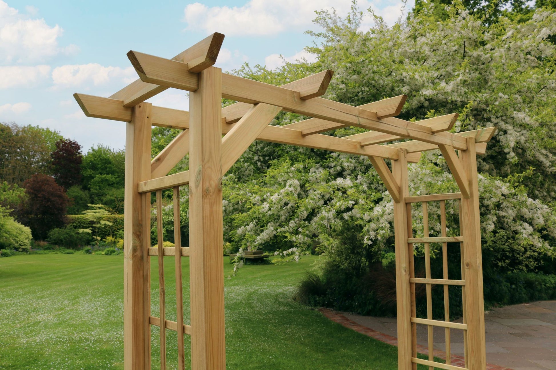 Featuring a pergola style roof and side trellis panels, this garden arch is an attractive feature to your garden.