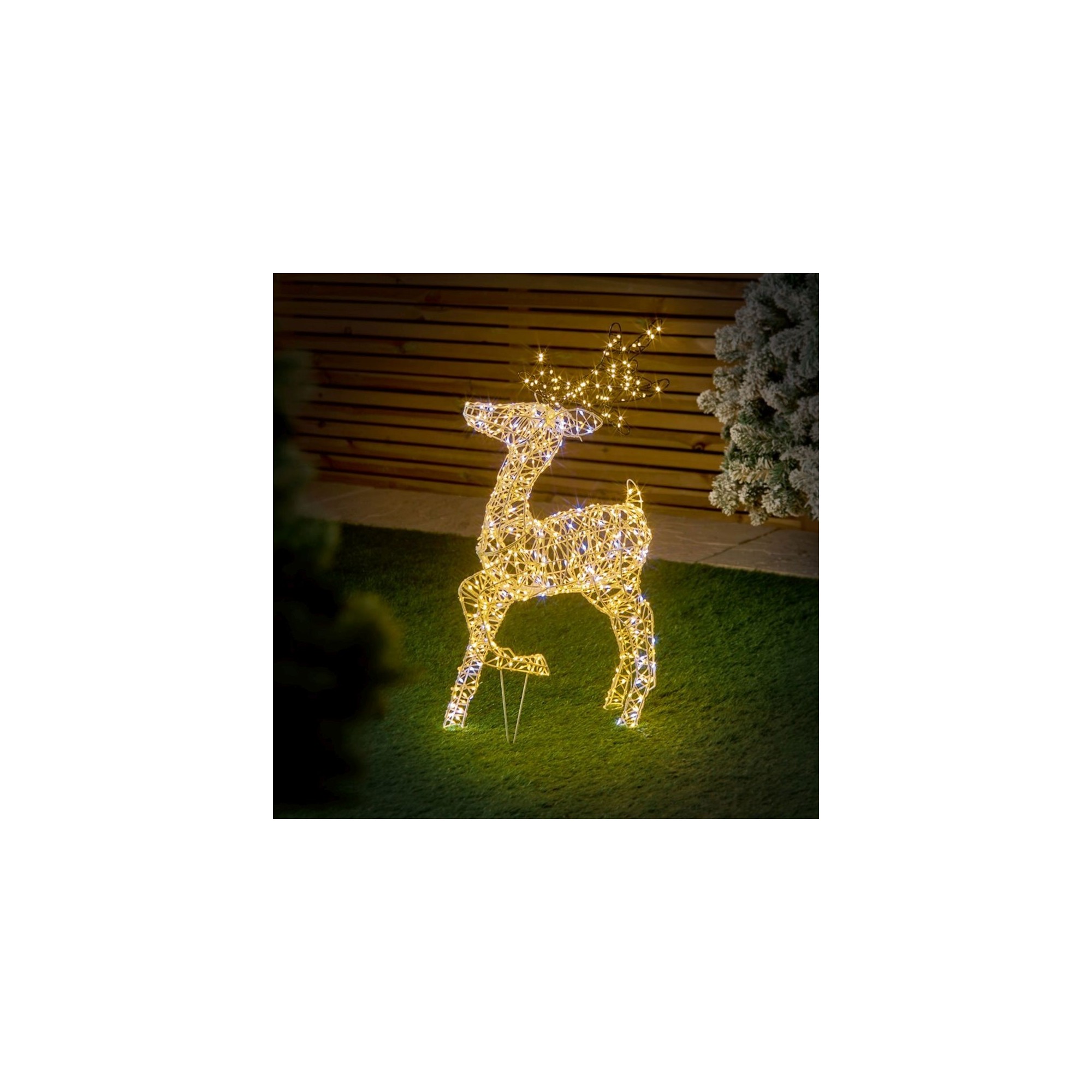 • Christmas 80cm White rattan effect Reindeer with 950 White & Warm White LEDs